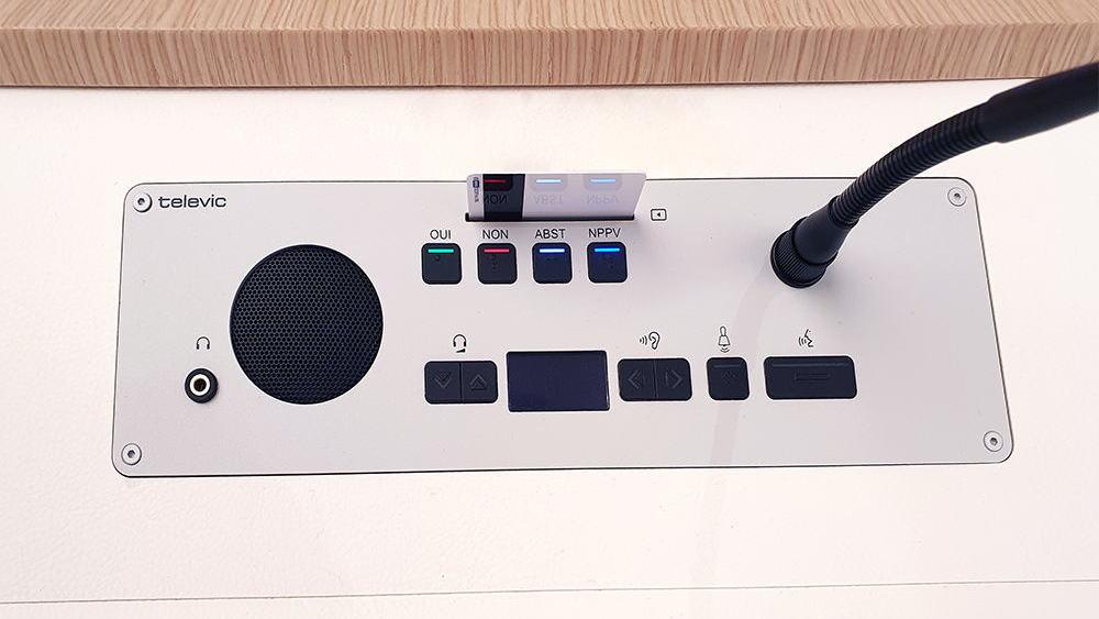 - Système de conférence Televic avec 1 poste de conférence multimédia Unicos pour le président et 277 postes de conférence pour délégué Confidéa F-DIV sur mesure