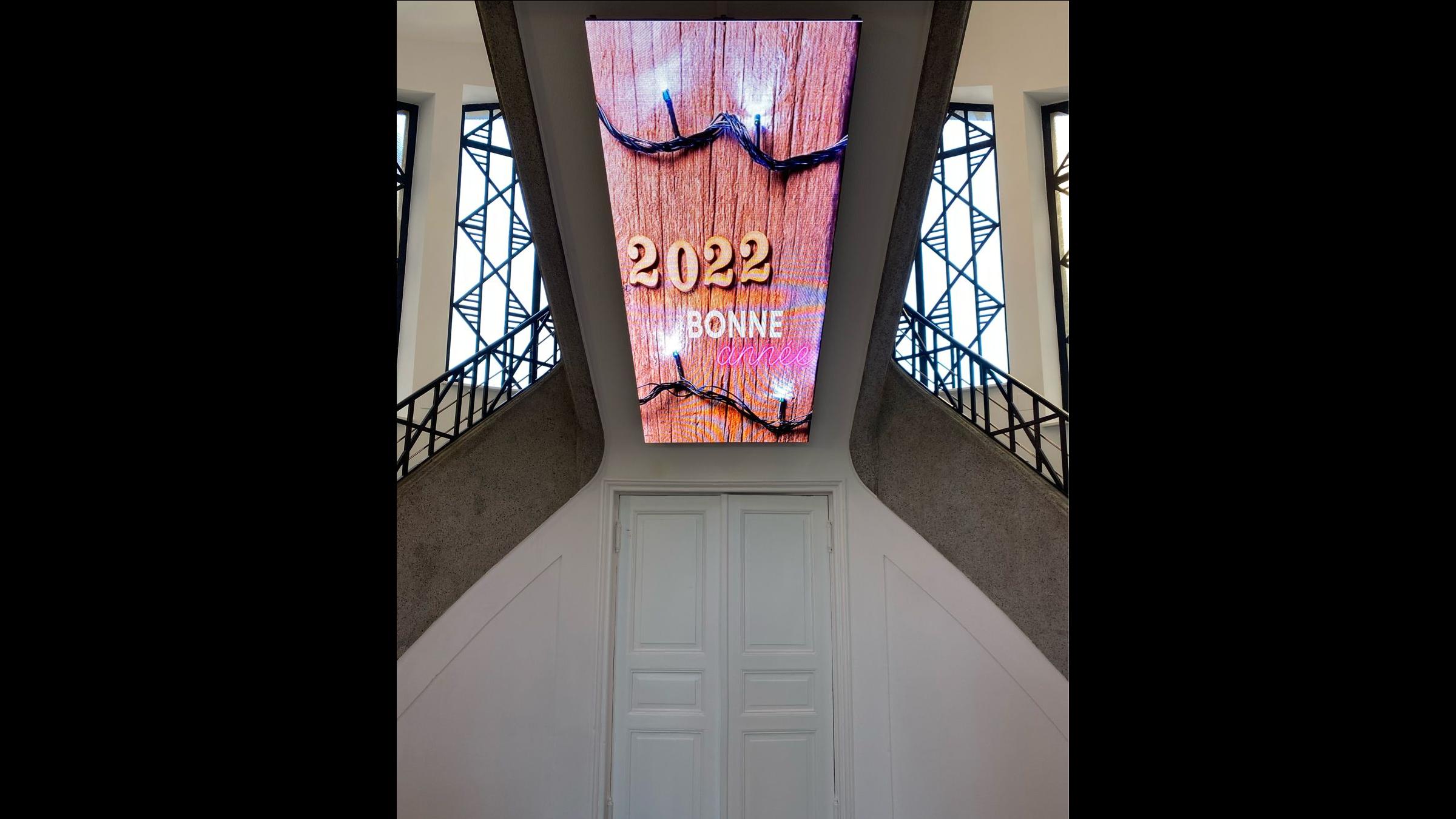 - 2 vidéoprojecteurs laser Epson et 3 écrans Samsung sont raccordés à une matrice Crestron DM16 ;
